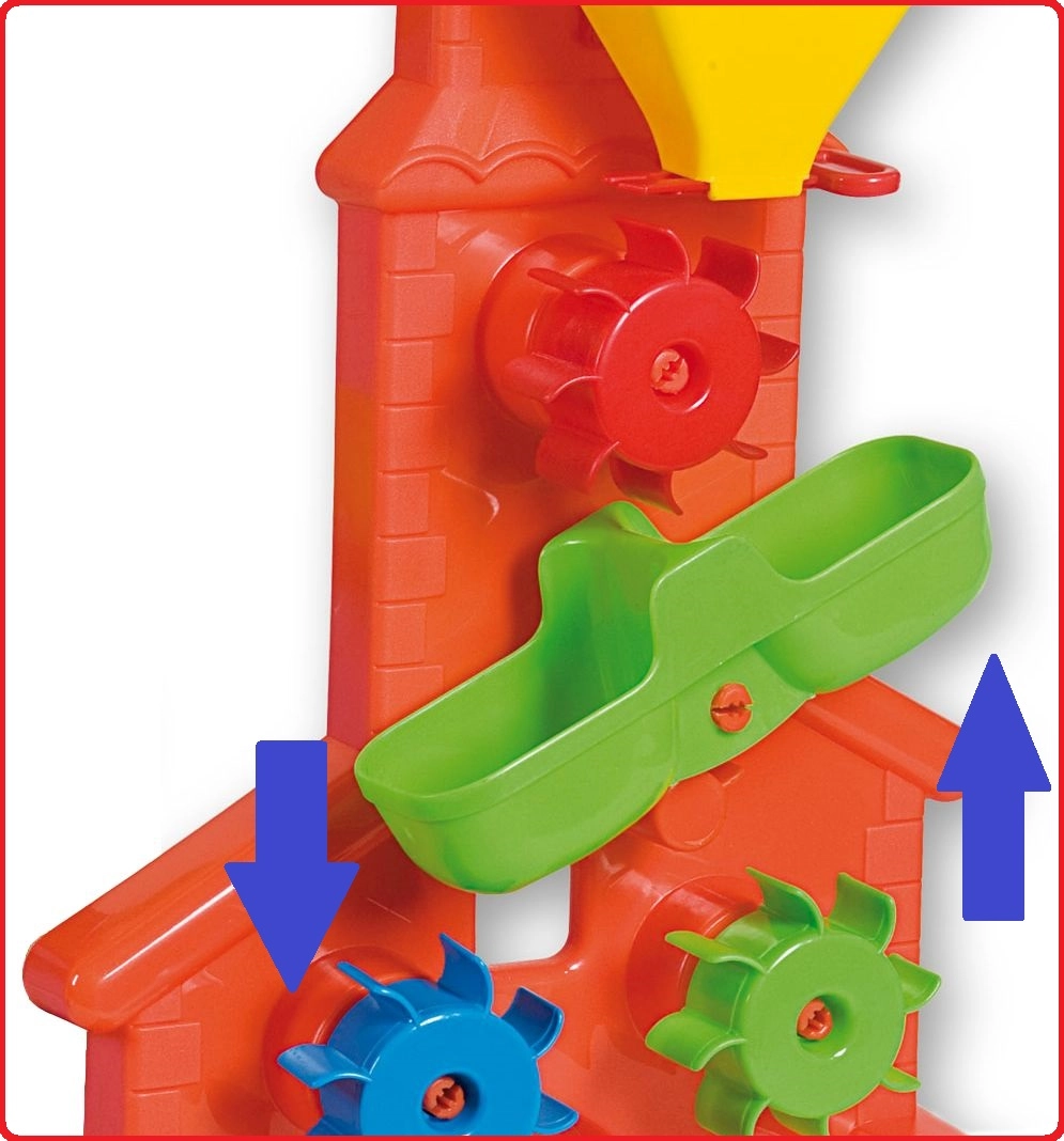 Αυτός ο ανθεκτικός μύλος είναι εξαιρετικός σύντροφος για την άμμο αλλά και για το νερό. Τα παιδιά μπορούν να ρίχνουν άμμο ή να χύνουν νερό στη φαρδιά χοάνη με ρύθμιση και να παρατηρούν πώς οι τρεις πολύχρωμοι τροχοί ζωντανεύουν και περιστρέφονται. Το διαχωριστικό αυλάκι βοηθά στην κατεύθυνση της ροής και ενθαρρύνει τον πειραματισμό.