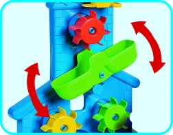Το διαισθητικό κινούμενο συρόμενο κλείστρο κάτω από τη χοάνη επιτρέπει στα παιδιά να ρυθμίζουν το μέγεθος του ανοίγματος και έτσι την ένταση της ροής. Το παιχνίδι είναι κατασκευασμένο στην Ιταλία από ποιοτικά πλαστικά με έμφαση στην ασφάλεια των μικρότερων παιδιών.