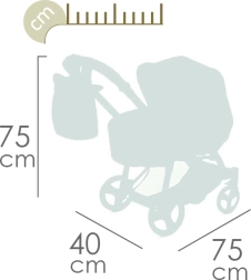 Το καροτσάκι «μεγαλώνει» με το παιδί χάρη στη ρυθμιζόμενη λαβή ύψους (58/66/75/80 cm) και, με τους περιστρεφόμενους μπροστινούς τροχούς, χειρίζεται άψογα και σε εσωτερικούς χώρους. Δεν λείπουν η ζώνη τριών σημείων για την κούκλα, το μεγάλο κάτω καλάθι για αξεσουάρ και το ταιριαστό σακίδιο για το καροτσάκι ή την πλάτη. Η πτυσσόμενη κατασκευή διευκολύνει τη μεταφορά και την αποθήκευση.