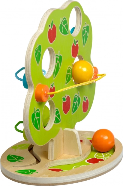 Η σχεδιαστικά ελκυστική τσουλήθρα με μπίλιες σε σχήμα δέντρου διαθέτει αρκετές κλιμακωτές ράγες στα πλάγια. Αρκεί να τοποθετήσετε μία από τις λείες, μεγάλες ξύλινες μπάλες στην κορυφή και να παρακολουθήσετε πώς κυλά προς τα κάτω, παράγοντας ρυθμικό «κλικ-κλακ» και σταματώντας στη βάση του δέντρου. Το παιχνίδι είναι ιδανικό για δραστήρια παιδιά που αγαπούν την κίνηση, τους ήχους και την ανακάλυψη αιτίων και αποτελεσμάτων.