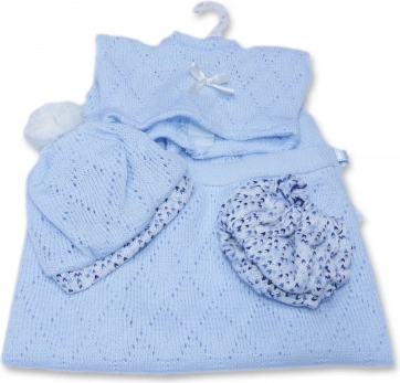 Το σετ ρούχων για μωρό-κούκλα μεγέθους 26 cm περιλαμβάνει ζακετάκι, σκουφάκι και κιλοτάκι. Έχει σχεδιαστεί ώστε να προσφέρει μέγιστη άνεση και κομψότητα στο παιχνίδι με την κούκλα. Η συσκευασία περιλαμβάνει επίσης μια απαλά πλεκτή κουβερτούλα που ολοκληρώνει την εμφάνιση. Το σετ είναι συσκευασμένο σε διάφανο περιτύλιγμα με πλαστική ή χάρτινη κρεμάστρα.