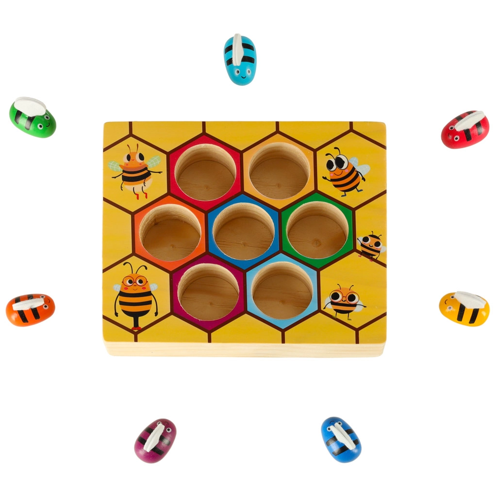 Το παιχνίδι βοηθά στην ανάπτυξη της λεπτής κινητικότητας και του συντονισμού χεριού-ματιού μέσα από τη διασκέδαση με τις πολύχρωμες μέλισσες.