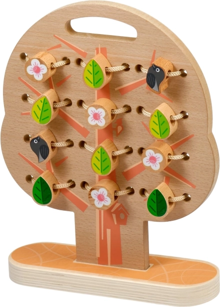 Αυτό το ποιοτικό ξύλινο σετ προσφέρει στα παιδιά διασκεδαστικό πέρασμα και δεσίματα πάνω σε στιβαρή δεντρόμορφη βάση με σταντ. Περιλαμβάνει πολύχρωμα κομμάτια (φύλλα, άνθη, μούρα, βελανίδια, φρούτα, νιφάδες, έντομα κ.ά.) και αρκετά κορδόνια για ατελείωτους συνδυασμούς. Μετά το παιχνίδι, τα κομμάτια μπορούν να αποθηκευτούν στην πρακτική λινοτσάντα.