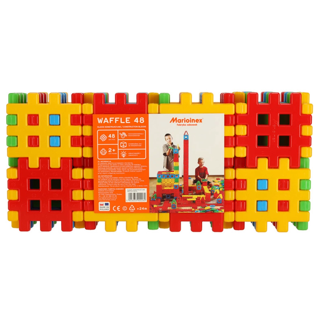 Ανακαλύψτε τη χαρά της δημιουργίας με ένα μεγάλο σετ 48 πολύχρωμων βαφλοειδών τουβλών διαστάσεων περίπου 10,5 × 10,5 cm. Χάρη στα μεγάλα, ασφαλή και ανθεκτικά κομμάτια συνδέονται εύκολα, εφαρμόζουν άψογα στο παιδικό χέρι και ενισχύουν την δημιουργικότητα, τη λεπτή κινητικότητα και τη χωρική φαντασία παιδιών από 2 ετών. Περισσότερα κομμάτια σημαίνουν μεγαλύτερες κατασκευές και περισσότερη διασκέδαση για αδέλφια και φίλους.