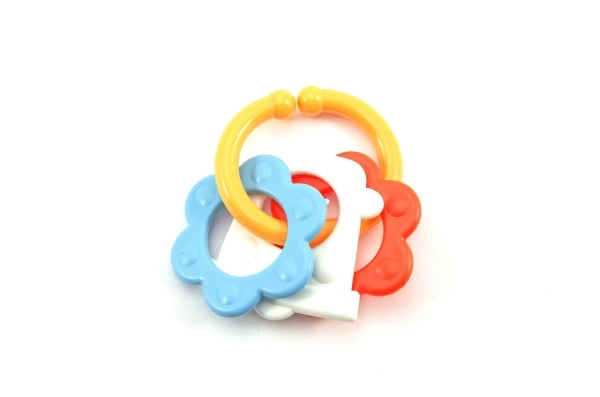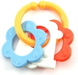 Ο πολύχρωμος πλαστικός μασητήρας μας είναι σχεδιασμένος για τα μικρά χεράκια, ώστε να μπορούν εύκολα να πιάνουν κάθε ένα από τα σχήματά του. Χάρη στην ποικιλία του θα διεγείρει τόσο τις αισθήσεις όσο και τα ούλα του μωρού σας.