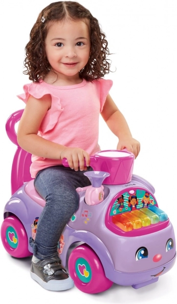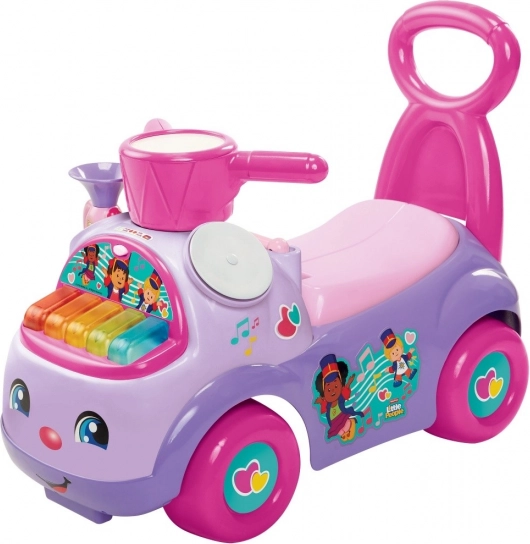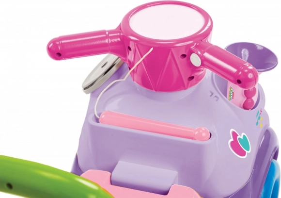 Στο μπροστινό μέρος υπάρχουν χρωματιστά πλήκτρα με δύο λειτουργίες: αναπαραγωγή 5 χαρούμενων πομπώδων μελωδιών και ελεύθερο μουσικό παιχνίδι, που υποστηρίζει τη δημιουργικότητα και το αίσθημα του ρυθμού. Δεν λείπει κρυφή θήκη κάτω από τη σέλα για μικροαντικείμενα και αγαπημένους θησαυρούς.