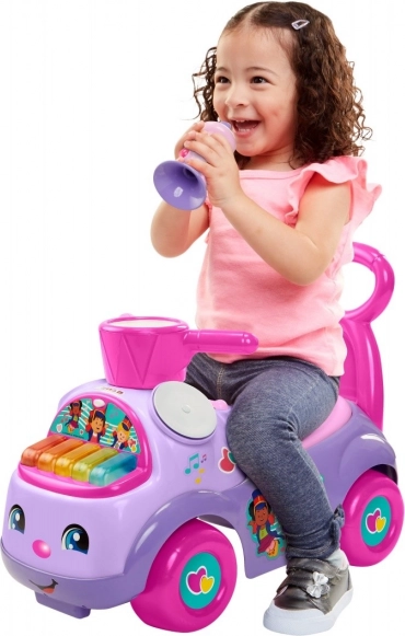 Το μωβ ποδηλατάκι ισορροπίας FISHER-PRICE Μουσική παράσταση είναι ένας πολυδύναμος σύντροφος για τις πρώτες βόλτες και τα πρώτα βηματάκια. Χάρη στην πίσω χειρολαβή λειτουργεί ως σταθερό στήριγμα στο περπάτημα και, όταν το παιδί καθίσει, σπρώχνει με τα ποδαράκια του, ενισχύοντας φυσικά τους μύες και εξασκώντας την ισορροπία.