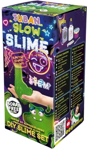 Το σετ Tuban Super Slime προσφέρει μια μοναδική εμπειρία στην κατασκευή slime, που λάμπει στο σκοτάδι. Αρκεί να ακολουθήσετε απλά τις οδηγίες για να δημιουργήσετε το δικό σας μοβ slime που δείχνει υπέροχο!