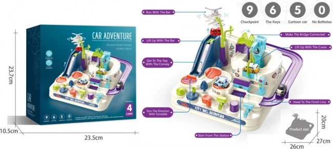 Τα κουμπιά ελέγχου και οι περιστρεφόμενες ροδέλες δίνουν στα παιδιά τον έλεγχο σε ανυψωτικές πλατφόρμες, κινούμενες επιφάνειες και γέφυρα. Το παιχνίδι αναπτύσσει τον σχεδιασμό και τη λήψη αποφάσεων – οι μικροί δρομείς πρέπει να σκεφτούν πώς να διανύσουν καλύτερα τη διαδρομή και να ξεπεράσουν τις παγίδες.