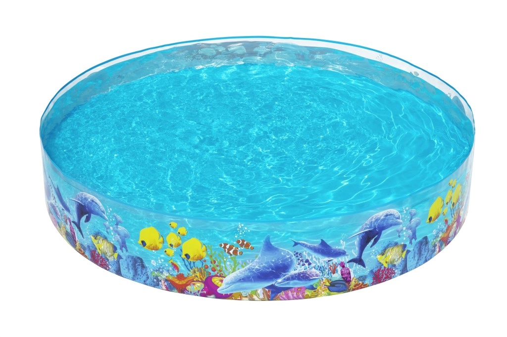 Η μεγάλη κυκλική αναδιπλούμενη πισίνα BESTWAY είναι ιδανική για τον κήπο ή το εξοχικό. Η κατασκευή σταθεροποιείται μόνη της μετά το γέμισμα, τα στιβαρά PVC τοιχώματα αντέχουν στη συνηθισμένη χρήση και τα θαλάσσια γραφικά με δελφίνια και ψαράκια ενθουσιάζουν άμεσα τα παιδιά. Η πισίνα καθαρίζεται εύκολα, διπλώνεται και αποθηκεύεται για την επόμενη σεζόν.