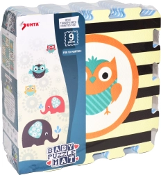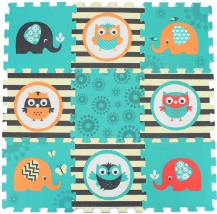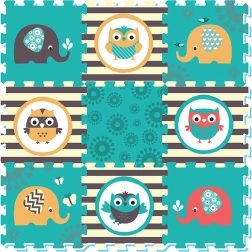 Το αφρώδες παζλ με μοτίβα Κουκουβάγιας και Ελέφαντα σε ζωηρά χρώματα τραβά την προσοχή κάθε παιδιού.