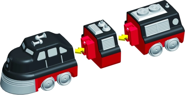 Στη συσκευασία υπάρχουν 9 κομμάτια, από τα οποία συναρμολογείτε 3 προετοιμασμένα τρένα. Αλλάζοντας τα αρθρώματα δημιουργείτε δεκάδες πρωτότυπες παραλλαγές χωρίς όρια στη φαντασία.