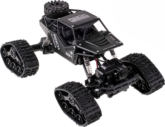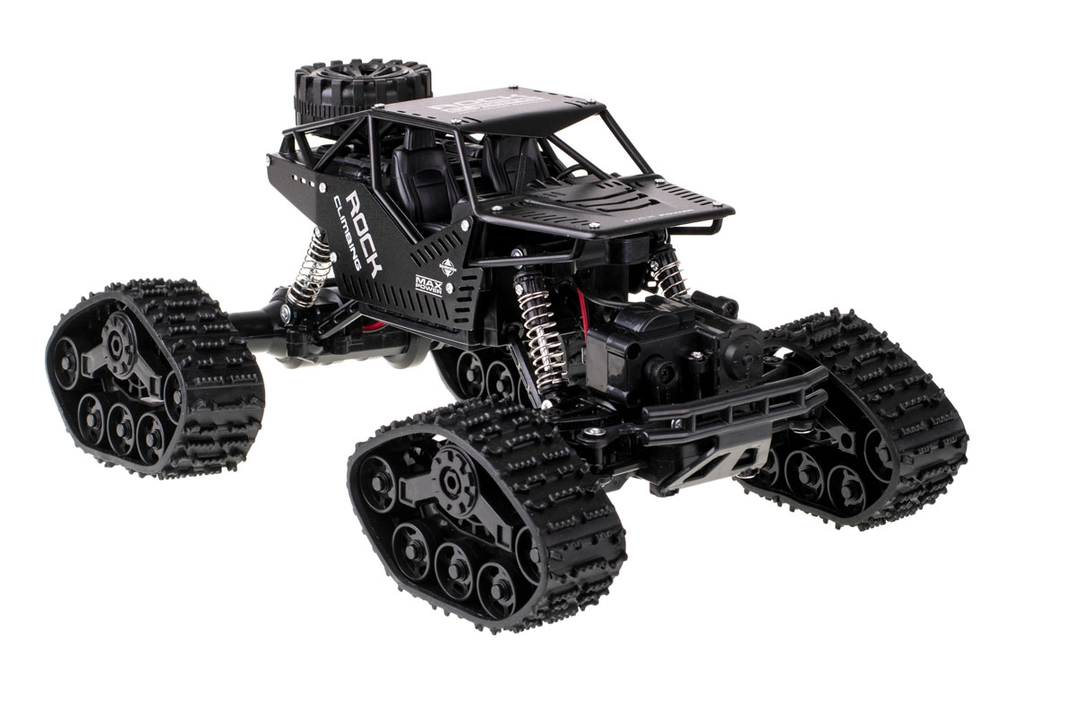 Διασκεδαστικό και ανθεκτικό εκτός δρόμου RC αυτοκίνητο με κίνηση 4x4, εναλλάξιμους τροχούς με λαστιχένιες ερπύστριες και τηλεχειριστήριο 2,4 GHz. Χάρη στην ελατηριωτή ανάρτηση και τα μεγάλα λαστιχένια ελαστικά ανταποκρίνεται σε διάφορες επιφάνειες. Ο εύκολος χειρισμός είναι ιδανικός για αρχάριους και παιδιά από 6 ετών.