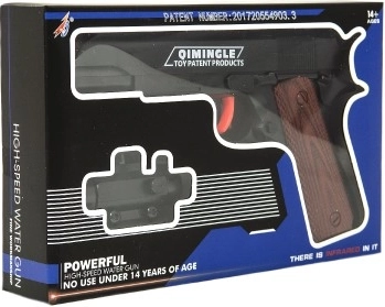 Αυτό το ρεαλιστικά σχεδιασμένο πλαστικό πιστόλι είναι φτιαγμένο για μαλακές μπίλιες, ώστε να απολαμβάνετε δυναμικό παιχνίδι με έμφαση στην ασφάλεια. Χάρη στο συμπαγές μήκος 20 εκ. εφαρμόζει άνετα στο χέρι και χειρίζεται εύκολα. Συσκευασμένο σε δώρο-κουτί διαστάσεων 24 × 15 × 4 εκ.