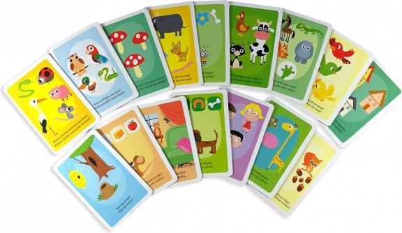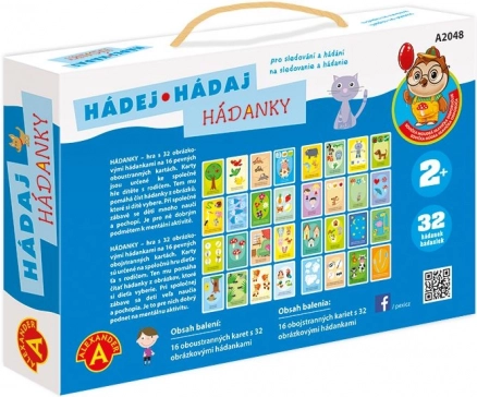 - 16 μεγάλες πολύχρωμες κάρτες (32 εικονικά αινίγματα), τσεχικές και σλοβακικές οδηγίες, σταθερό κουτί με χερούλι
