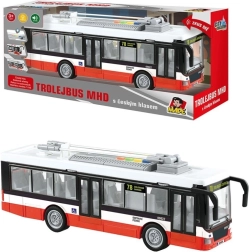Ρεαλιστικό τρόλεϊ αστικών συγκοινωνιών με κίνηση αδράνειας, με τσεχική φωνή και φωτεινά εφέ, που θα ενθουσιάσει μικρούς οδηγούς και φίλους των ΜΜΜ. Αναπαράγει ανακοινώσεις στάσεων στα τσεχικά, έχει τσεχικό σχεδιασμό γνωστό από τις πόλεις μας και χάρη στην κίνηση αδράνειας κινείται εύκολα χωρίς ανάγκη τηλεχειρισμού. Οι μπαταρίες περιλαμβάνονται.
