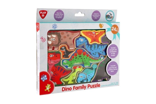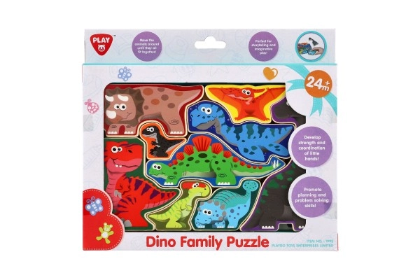 Ανακαλύψτε ένα διασκεδαστικό ξύλινο παζλ με θέμα τους δεινόσαυρους, που αναπτύσσει τη λεπτή κινητικότητα, τη λογική σκέψη και τον συντονισμό χεριού–ματιού. Εννέα πολύχρωμα κομμάτια σε σχήμα δεινοσαύρων τα παιδιά τα τοποθετούν σύμφωνα με το υπόδειγμα ή παίζουν ελεύθερα. Ιδανικό εκπαιδευτικό παιχνίδι για παιδιά από 24 μηνών.