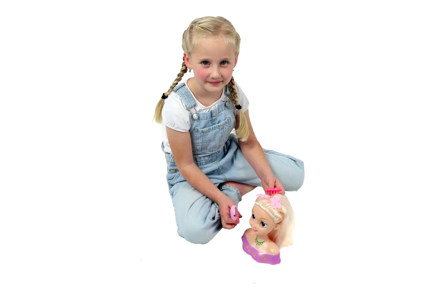 Το ξανθό κεφάλι χτενίσματος με αξεσουάρ είναι τέλεια επιλογή για μικρές στυλίστριες που αγαπούν τα χτενίσματα και το δημιουργικό παιχνίδι. Τα πυκνά, ποιοτικά μαλλιά χτενίζονται και διαμορφώνονται εύκολα, ώστε να πετυχαίνετε κομψές αλογοουρές, γαλλικές πλεξούδες και πλήθος από μικρές πλεξίδες. Το σετ περιλαμβάνει πρακτικά αξεσουάρ που βοηθούν σε κάθε αλλαγή.