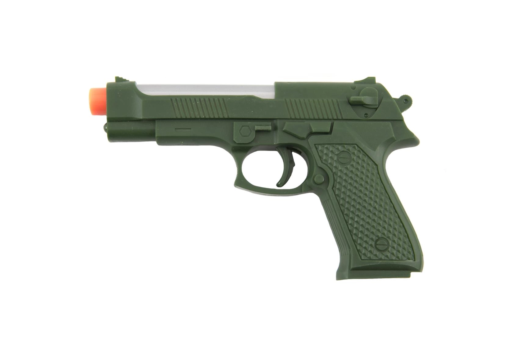 Αυτό το ρεαλιστικό πλαστικό πιστόλι θα ενθουσιάσει όλους τους μικρούς φίλους των παιχνιδιών δράσης. Χάρη στα φωτεινά και ηχητικά εφέ προσφέρει ακόμη περισσότερη διασκέδαση και ενισχύει τη φαντασία και το δημιουργικό παιχνίδι. Στη συσκευασία θα βρείτε ό,τι χρειάζεστε – οι μπαταρίες 2× AG10 περιλαμβάνονται ήδη.