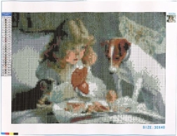 Λεπτομερές μοτίβο με κοπέλα και σκύλο σε μέγεθος 30 × 40 εκ., που μετά την ολοκλήρωση λάμπει όμορφα και ξεχωρίζει σε κορνίζα σε κάθε εσωτερικό χώρο.