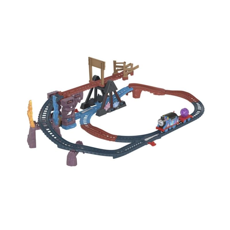 Ξεκινήστε κρυστάλλινη περιπέτεια με τον Thomas! Αυτό το δυναμικό σετ τρένων προσφέρει πολυεπίπεδη διαδρομή με καταρρέουσα γέφυρα, διασταύρωση και θεματικά “κρυστάλλινα” στοιχεία. Με έναν διακόπτη στην οροφή του τρένου, ο Thomas ξεκινά να κινείται στις ράγες και μεταφέρει το φορτίο στη σπηλιά.