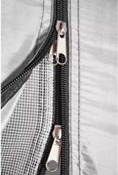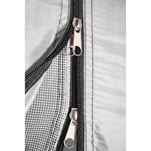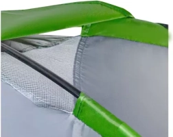 Η σκηνή είναι εξοπλισμένη με πρακτικό σκέπαστρο που προστατεύει τα πράγματά σας από τη βροχή. Η κουνουπιέρα εξασφαλίζει προστασία από τα έντομα και καλή κυκλοφορία του αέρα. Τη σωστή αερισμό ενισχύει επίσης το επάνω άνοιγμα με κουνουπιέρα, το οποίο μπορεί να προστατευθεί από τη βροχή.