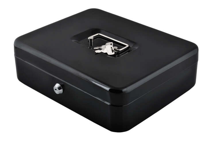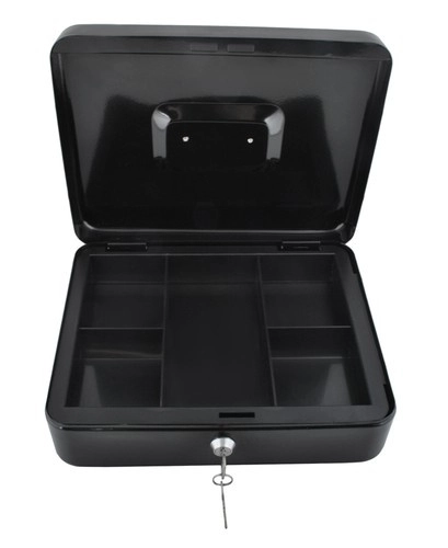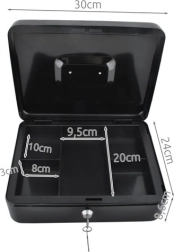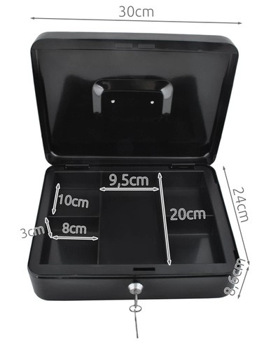 Αυτό το μεγάλο μεταλλικό ταμειακό κιβώτιο σε κομψό μαύρο συνδυάζει ασφάλεια, τάξη και ανθεκτικότητα. Το βαμμένο χαλύβδινο κέλυφος και οι στιβαροί εσωτερικοί μεντεσέδες προστατεύουν το περιεχόμενο από φθορές και μη εξουσιοδοτημένη πρόσβαση, ενώ η κλειδαριά με κλειδί (2 κλειδιά στη συσκευασία) εξασφαλίζει αξιόπιστο κλείδωμα.