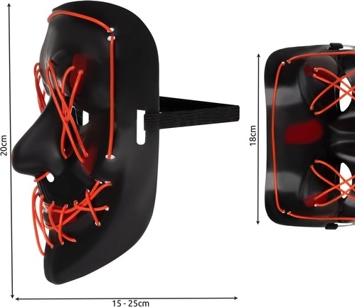 Η μάσκα προσφέρει τρεις διαφορετικές λειτουργίες φωτισμού - σταθερό, παλμικό και γρήγορο αναβόσβημα, προσθέτοντας διασκεδαστικό στοιχείο σε κάθε πάρτι. Διατίθεται επίσης με ελαστικό λουράκι, που επιτρέπει τέλεια προσαρμογή στο σχήμα του προσώπου.