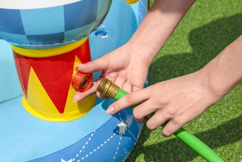 Το φουσκωτό πάρκο προσφέρει πισίνα, τσουλήθρα, εκτοξευτήρα νερού και διαστημικό παιχνίδι ρίψης δαχτυλιδιών, που θα χαρίσουν διασκέδαση για πολλές ώρες.