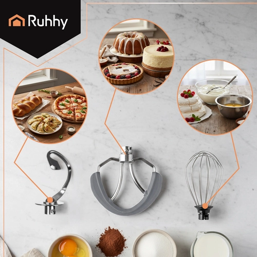 Η πλανητική κουζινομηχανή RUHHY είναι αξιόπιστος βοηθός για τη σύγχρονη κουζίνα. Το πλανητικό σύστημα εξασφαλίζει ομοιόμορφη ανάμειξη χωρίς νεκρές ζώνες, ενώ το προφίλ του μπολ επιστρέφει τα υλικά κάτω από το σύρμα για άψογα αποτελέσματα. Η μεγάλη χωρητικότητα 6,2 l και η υψηλή ισχύς 1500 W διαχειρίζονται άνετα βαριές προζυμωμένες ζύμες, κρέμες και γεμίσεις.