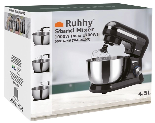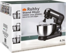 Η πλανητική κουζινομηχανή Ruhhy με ισχύ 1700 W είναι εξοπλισμένη με ανθεκτικό ανοξείδωτο μπολ όγκου 4,5 λίτρων, που εξασφαλίζει ευκολία χρήσης χάρη στην εργονομική σχεδίαση λαβής και το προστατευτικό καπάκι κατά των πιτσιλιών. Οι αντιολισθητικές βεντούζες προσφέρουν σταθερότητα στον πάγκο εργασίας. Στα πλεονεκτήματά της περιλαμβάνεται ο έλεγχος 8 ταχυτήτων με παλμική λειτουργία, ιδανικός για διάφορες τεχνικές μαγειρικής, όπως χτύπημα, ανάμιξη και ζύμωμα.