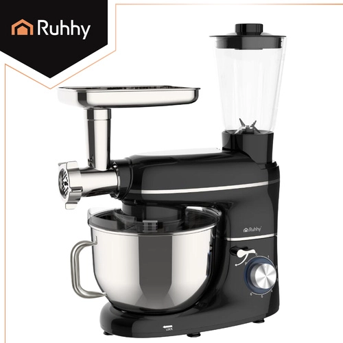 Η RUHHY 3σε1 είναι ένας πολυτελής βοηθός για τη σύγχρονη κουζίνα. Σε μία σταθερή βάση αποκτάτε πλανητική κουζινομηχανή για ζύμες και κρέμες, γυάλινο μπλέντερ για κοκτέιλ και σούπες και μύλο κρέατος με τρία δίσκα κοπής για άλεση, γέμιση και σπιτικά λουκάνικα. Ο ισχυρός κινητήρας 1500 W με χάλκινο τύλιγμα και το μεταλλικό κιβώτιο μετάδοσης προσφέρουν αξιόπιστη απόδοση ακόμη και σε πυκνά μίγματα.