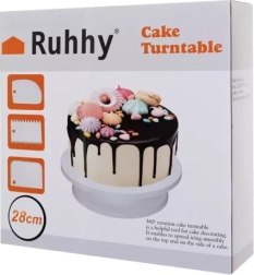 Η περιστρεφόμενη βάση τούρτας Ruhhy είναι ο ιδανικός βοηθός για όσους ενδιαφέρονται για διακόσμηση τούρτας σε επαγγελματικό επίπεδο. Κατασκευασμένη από ποιοτικό πλαστικό που εξασφαλίζει αντοχή και εύκολο καθάρισμα. Αυτή η βάση όχι μόνο διευκολύνει τη δουλειά στη διακόσμηση, αλλά λειτουργεί και ως κομψή πιατέλα για τα επιδόρπιά σας.