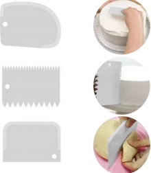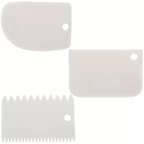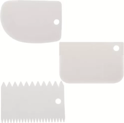 Το πακέτο περιλαμβάνει τρεις σπάτουλες διακόσμησης, καθεμία με διαφορετικό μοτίβο, για να δημιουργείτε ποικίλες υφές στις τούρτες σας.