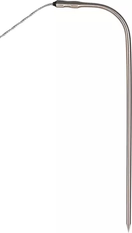 Ανθεκτικός στη θερμότητα ανιχνευτής από ανοξείδωτο ατσάλι με μακρύ καλώδιο για ασφαλή μέτρηση μέσα στο ψητό, στην κατσαρόλα ή στη σχάρα – χωρίς να ανοίγετε τον φούρνο.