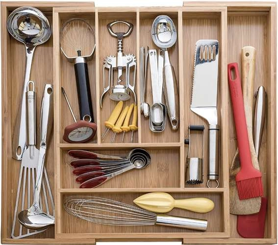 Έξυπνο συρόμενο σύστημα επιτρέπει την επέκταση του οργανωτή από 6 σε 8 θήκες. Δημιουργείτε εύκολα χώρο για μικρά πιρουνάκια, μαχαίρια και άλλα αξεσουάρ.