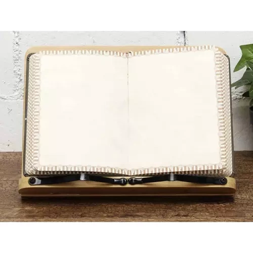 Κατασκευασμένη από φυσικό μπαμπού με μεταλλική δομή για μεγάλη αντοχή και σταθερότητα. Χάρη στις 6 ρυθμιζόμενες θέσεις επιλέγετε εύκολα τη βέλτιστη γωνία για ανάγνωση συνταγών, μελέτη, σκιτσάρισμα ή παρακολούθηση βίντεο.