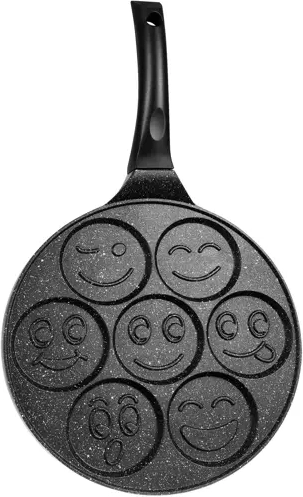 Κάντε το πρωινό πιο διασκεδαστικό για παιδιά και μεγάλους με αυτό το πρακτικό τηγάνι RUHHY για 7 τηγανίτες ή αυγά μάτια ταυτόχρονα. Χάρη στην αντικολλητική επιφάνεια, την ομοιόμορφη κατανομή θερμότητας και τη συμβατότητα με όλους τους τύπους εστιών, συμπεριλαμβανομένης της επαγωγικής, θα ετοιμάζετε χαριτωμένες τηγανίτες με σχέδια smiley χωρίς να καίγονται και με ελάχιστο λάδι.