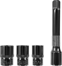 Στη συσκευασία θα βρείτε όλα τα απαραίτητα: 3 καρυδάκια 17/19/21 mm και προέκταση για καλύτερη πρόσβαση. Η ποιοτική χαλύβδινη κατασκευή αντιστέκεται σε παραμορφώσεις και ρωγμές, ενώ τα σιλικονούχα στοιχεία αυξάνουν την άνεση εργασίας. Περιλαμβάνεται και ανθεκτική θήκη που προστατεύει το εργαλείο κατά την αποθήκευση και μεταφορά.