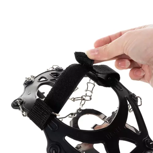Το ευέλικτο πλαίσιο TPE προσαρμόζεται γρήγορα σε παπούτσια μεγέθους 44–47 και τα Velcro αποτρέπουν την ολίσθηση κατά το περπάτημα.