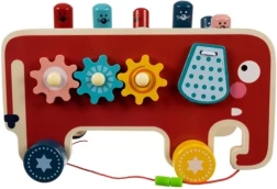 Παιδικό ξύλινο παιχνίδι σε σχήμα ελέφαντα, που αναπτύσσει τη λεπτή κινητικότητα και τη λογική σκέψη. Προσφέρει πολλές δραστηριότητες που διασκεδάζουν τα παιδιά για ώρες.