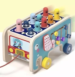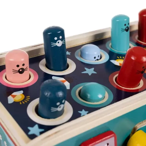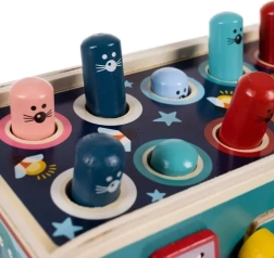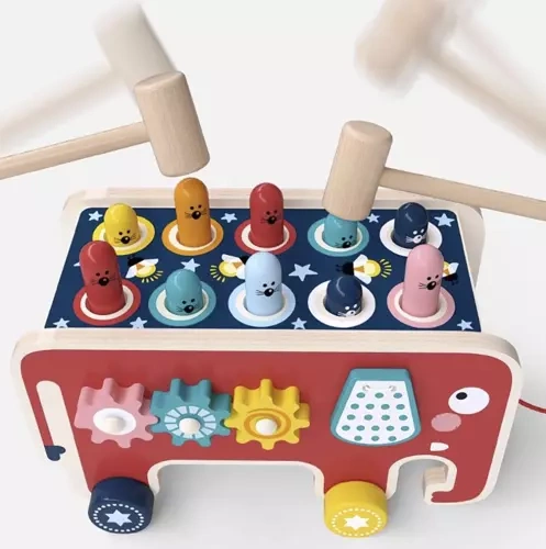 Αυτό το παιχνίδι υποστηρίζει την ανάπτυξη της λεπτής κινητικότητας και της συγκέντρωσης χάρη σε διαδραστικά στοιχεία όπως τα σφυράκια και τα γρανάζια.