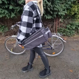 Η θερμική τσάντα ποδηλάτου Trizand διατηρεί τη θερμοκρασία φαγητού και ποτών, καθιστώντας την ιδανική για εκδρομές και πικνίκ. Είναι εξοπλισμένη με ανακλαστικές ταινίες για την ασφάλειά σας και προσαρμόζεται εύκολα σε οποιαδήποτε σχάρα χάρη στους ιμάντες με σκρατς. Με χωρητικότητα 9 λίτρων και αποσπώμενο ιμάντα ώμου, είναι πρακτική και άνετη.