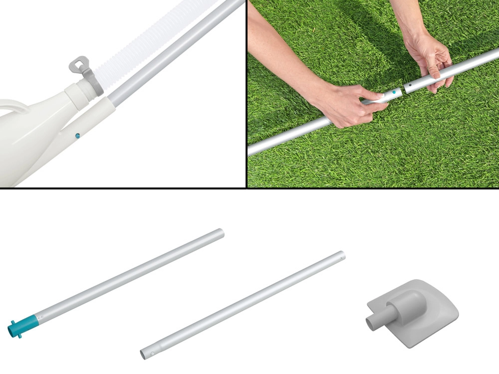 Λαβή μήκους 1,9 m και σωλήνας αναρρόφησης 6 m για εύκολο καθαρισμό των επιφανειών της πισίνας.