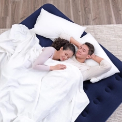 Το ανθεκτικό βινύλιο (PVC) αντέχει στη συχνή χρήση, ενώ οι πρακτικές βαλβίδες για γρήγορο φούσκωμα και ξεφούσκωμα με ασφάλεια εξοικονομούν χρόνο στο στήσιμο και στο μάζεμα. Οι διαστάσεις 203 × 183 × 22 cm φιλοξενούν άνετα δύο άτομα, καθιστώντας το ιδανικό για το σαλόνι αλλά και για τη σκηνή.