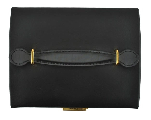 Η εσωτερική επένδυση από απαλό υλικό φροντίζει απαλά τις επιφάνειες των κοσμημάτων ώστε να μην γρατζουνίζονται. Χάρη στη πρακτική χειρολαβή μεταφέρεται εύκολα και, με τις συμπαγείς διαστάσεις της, ταιριάζει τόσο στον μπουντουάρ όσο και σε συρτάρι. Η διαχρονική μαύρη απόχρωση και οι χρυσές λεπτομέρειες αναδεικνύουν τον κομψό χαρακτήρα του χώρου.