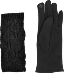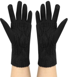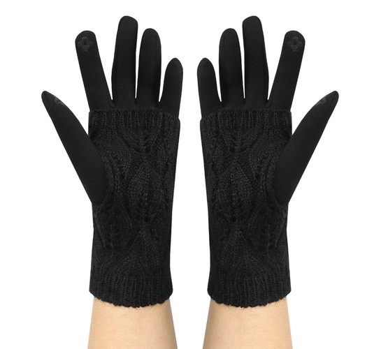Πρακτικά γάντια αφής σε κομψό μαύρο χρώμα επιτρέπουν τον χειρισμό του smartphone χωρίς να τα βγάζετε χάρη στην ειδική επιφάνεια σε αντίχειρα και δείκτη. Περιλαμβάνεται ζεστή, αποσπώμενη μανσέτα με πλεκτό μοτίβο για επιπλέον προστασία από το κρύο και τον άνεμο. Unisex γραμμή, απαλό υλικό και καθολικό μέγεθος εξασφαλίζουν άνεση σε ταξίδια, οδήγηση και καθημερινή χρήση.