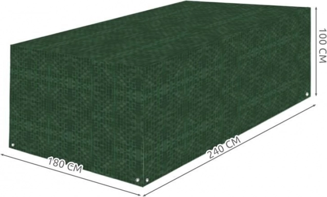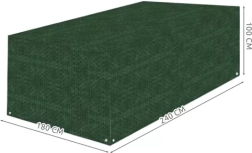 Το κάλυμμα για έπιπλα κήπου προσφέρει άριστη προστασία από τις καιρικές συνθήκες. Είναι κατασκευασμένο από ανθεκτικό πολυαιθυλένιο με βάρος 100g/m2, που εξασφαλίζει μεγάλη διάρκεια ζωής. Κατάλληλο για έπιπλα όπως τραπέζι και έως 6 καρέκλες ή άλλο εξοπλισμό κήπου, όπως κούνια, παγκάκι ή ψησταριά.