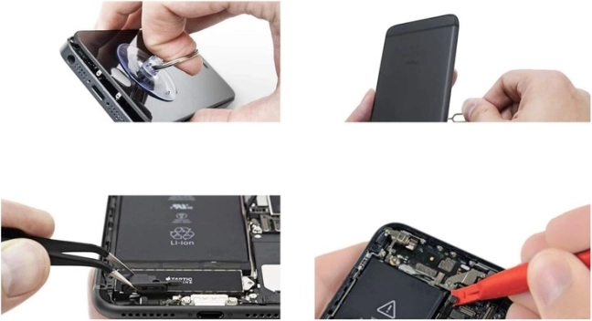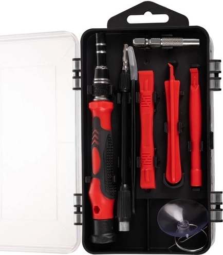 Μαγνητιστής/απομαγνητιστής, τσιμπίδα με λεπτή μύτη και βεντούζα για γυαλί διευκολύνουν το ασφαλές λύσιμο ευαίσθητων συσκευών χωρίς ζημιές.