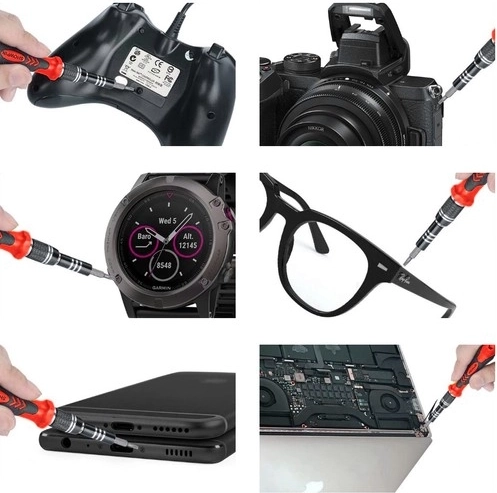 Το σετ περιλαμβάνει μπιτ για Torx/Torx με οπή, Phillips, ίσια, τριγωνικά, Pentalobe, Y και άλλα – ιδανικό για τηλέφωνα, laptop, ρολόγια και γυαλιά.
